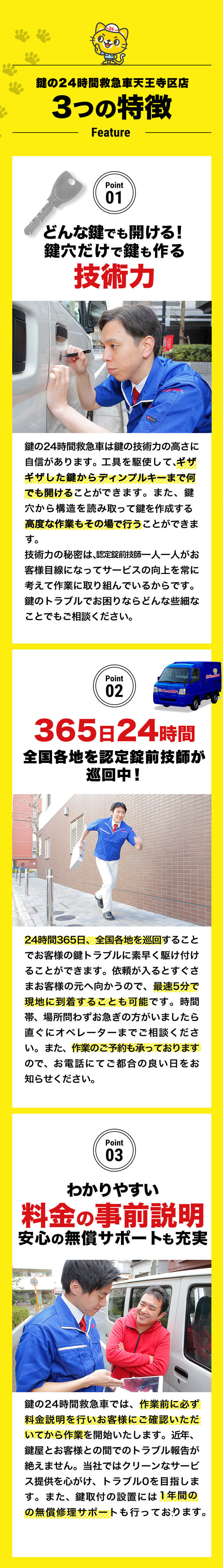 天王寺区の「カギの24時間救急車」では、スタッフが天王寺動物園のボランティアとして参加することで、緊急時の対応力を養っています。鍵開け、鍵交換、鍵修理における迅速な対応が必要な場合、私たちが即座に解決します。